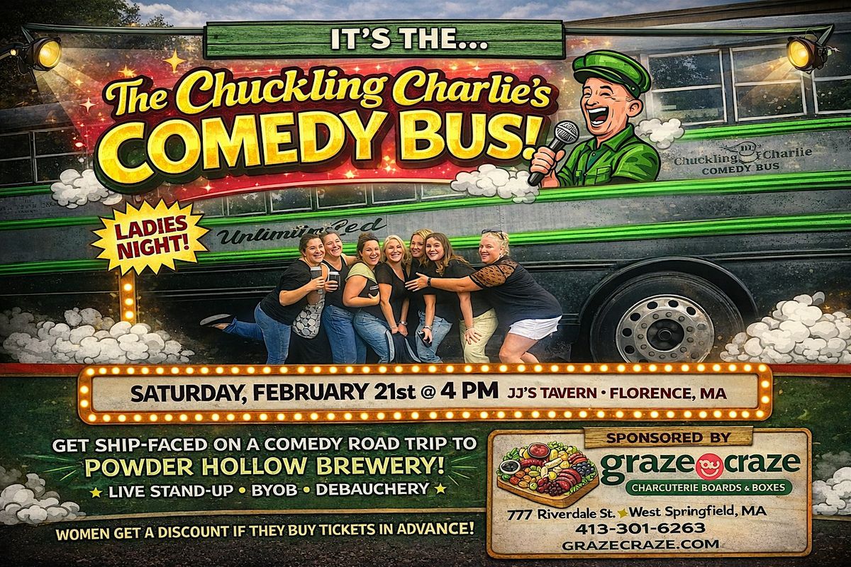 This Saturday, February 21st at 4:00 PM, it’s Ladies Night on the Chuckling Charlie Comedy Bus as we pull up to JJ’s Tavern (99 Main Street, Florence) and do what we do best: turn traffic into a laugh track.