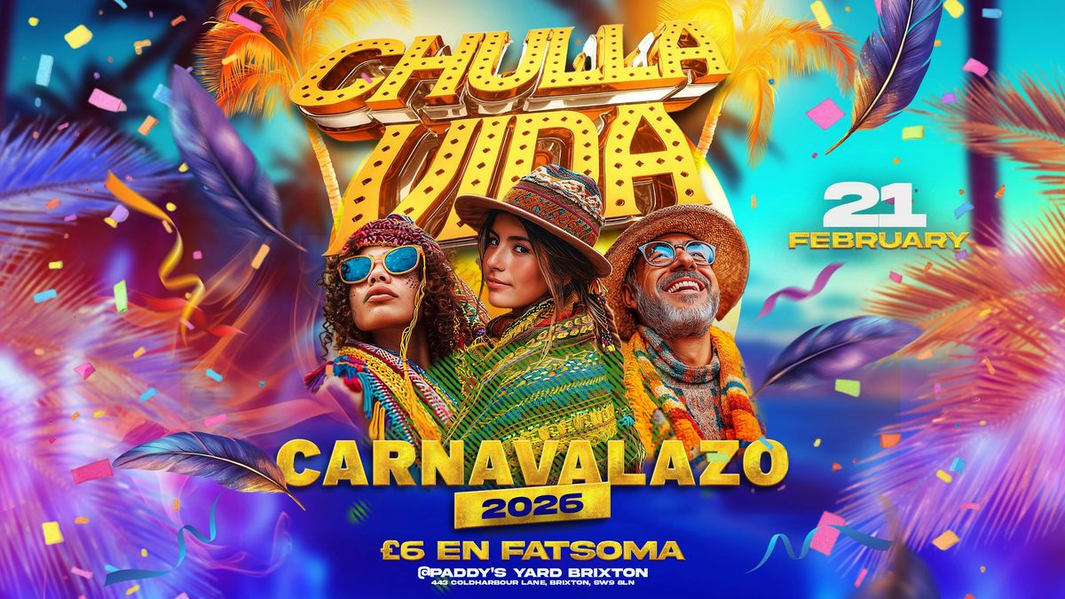 LA FIESTA ECUATORIANA MAS HOT DE LONDRES - CHULLA VIDA ESTA DE REGRESO CON EL GRAN CARNAVALAZO DEL 2026!Disfruta hasta las 4AM con los mejores DJs Ecuatorianos en Londres - DJ Leam, Andres Zambrano & Sebas Sensation tocando lo mejor de la musica Ecuatoriana y crossover latino!Invitado Especial: DJ JAIR