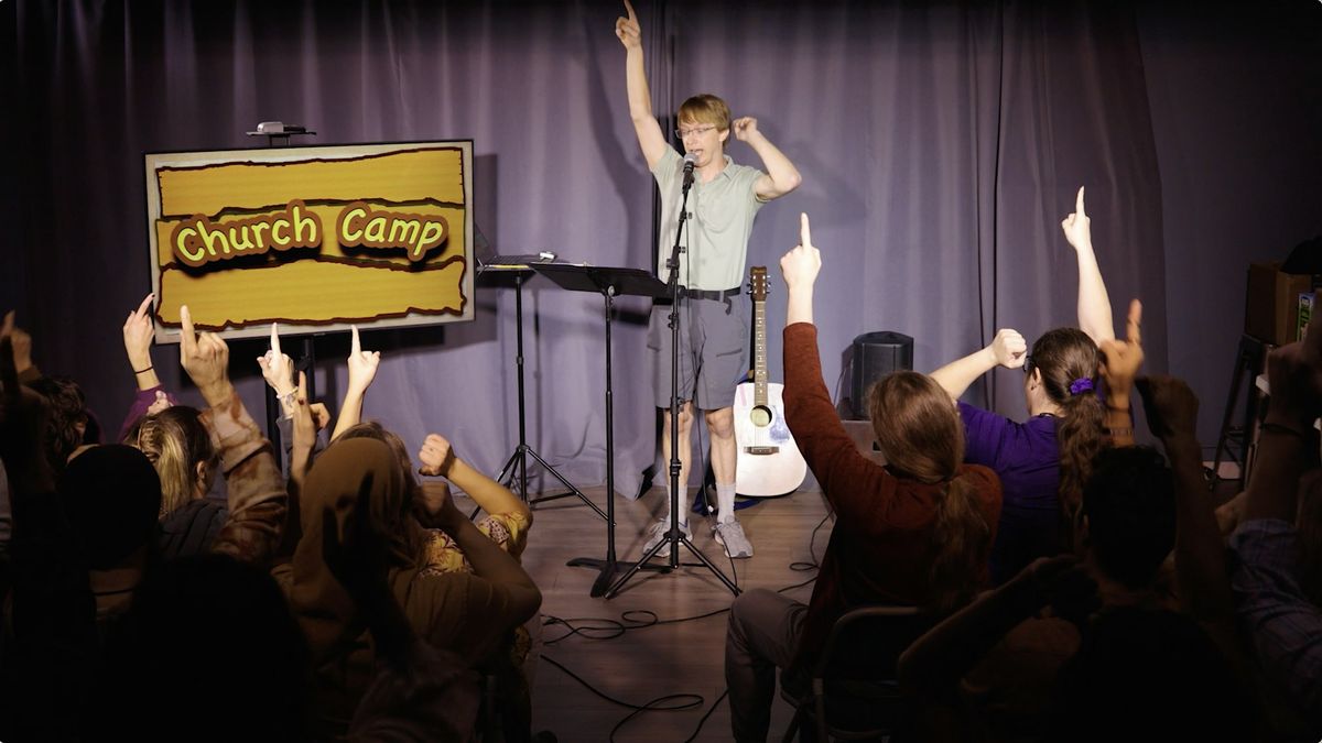 is the immersive, R-rated parody of your classic church camp orientation experience with music, games, confessions and baptisms!