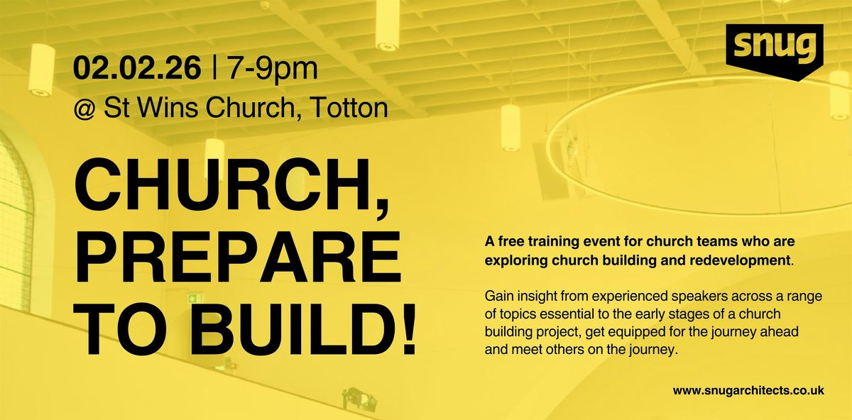 Church, Prepare to Build! is a free training event, designed to equip and encourage church leaders, teams, and representatives who are embarking on, or exploring, the journey of church building and redevelopment. This event brings together experienced speakers who will share practical insight across a range of topics essential to the early stages of any church building project.