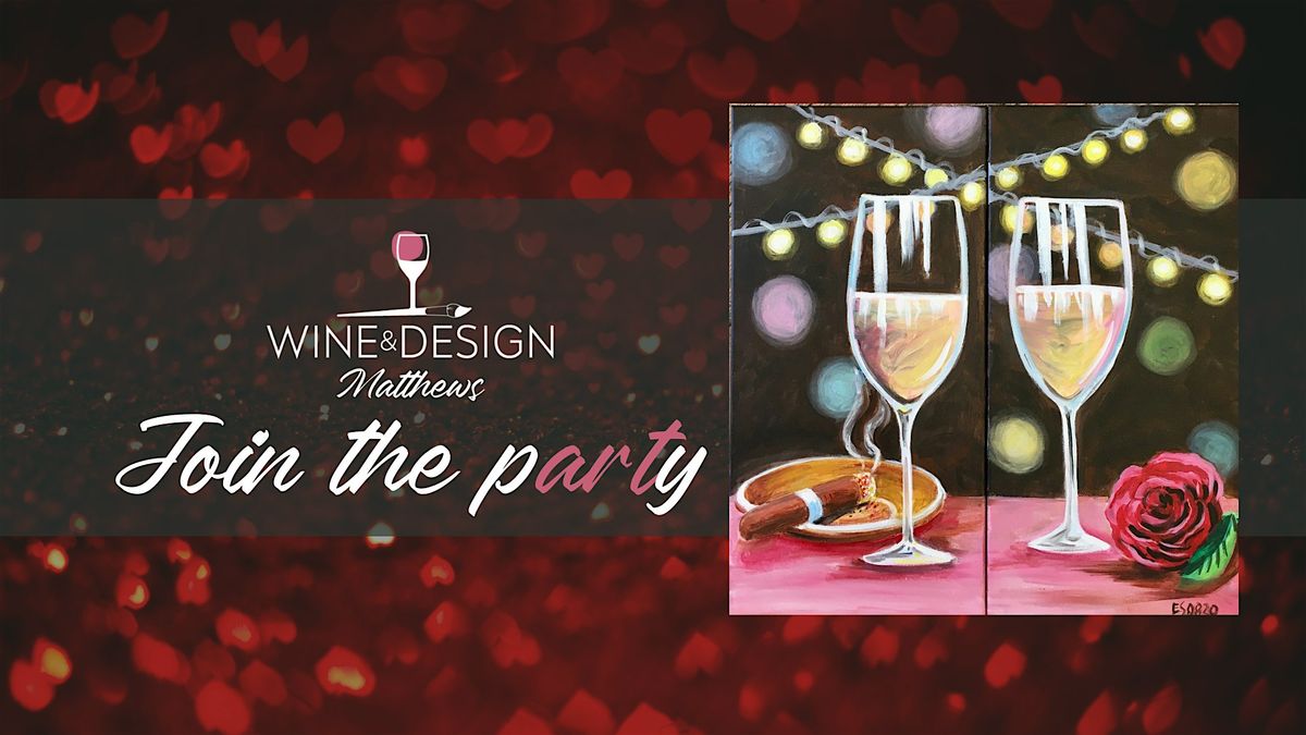 Skip the predictable dinner crowd and celebrate Valentine’s Day in a beautifully romantic way with Cigars & Roses, a luxurious couples’ paint experience at Wine & Design Matthews. This evening blends connection, creativity, elegance, and fun — the perfect Valentine’s celebration.
