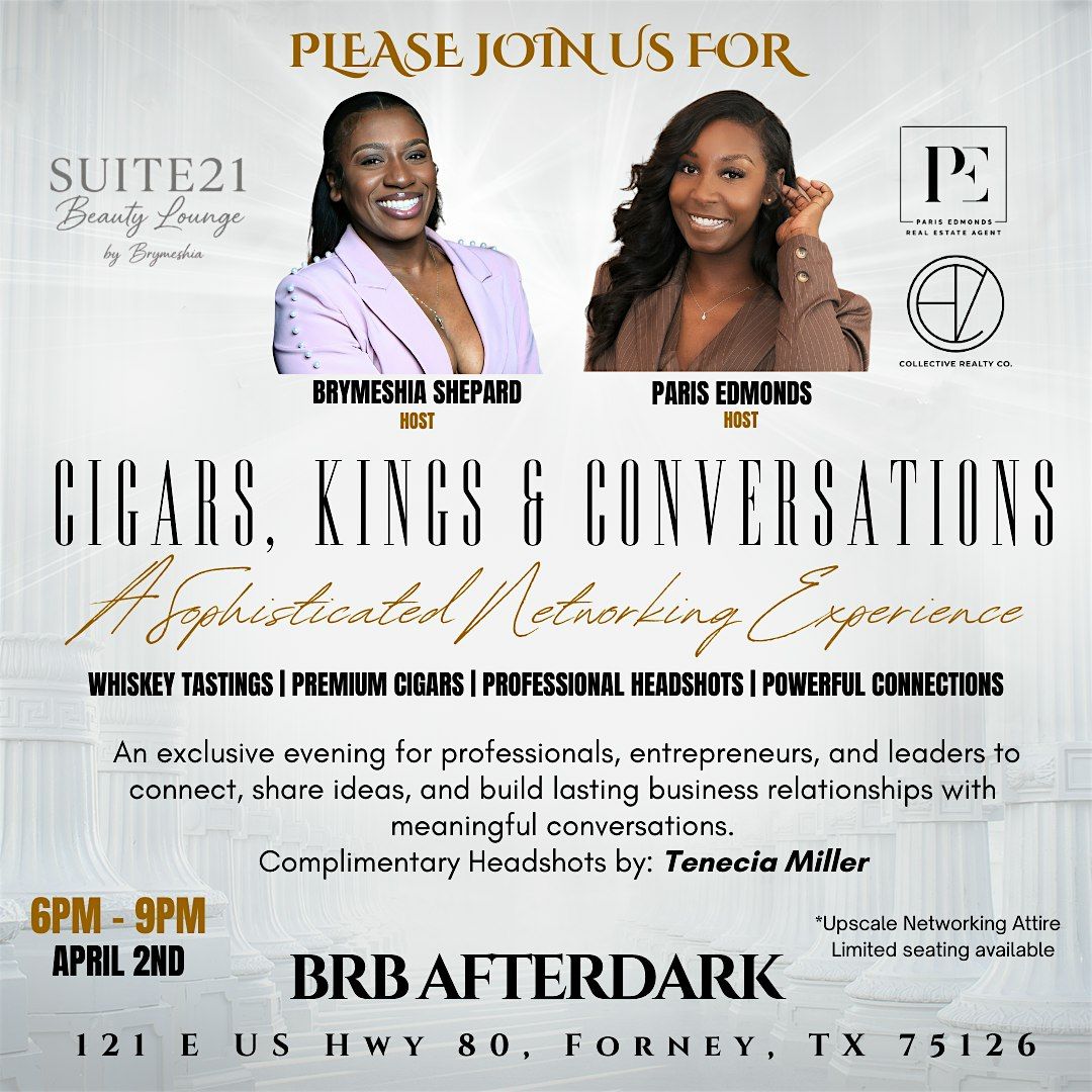 Cigars, whiskey, and powerful networking for ambitious men and women. Connect with entrepreneurs and professionals in an elevated setting.About this Event