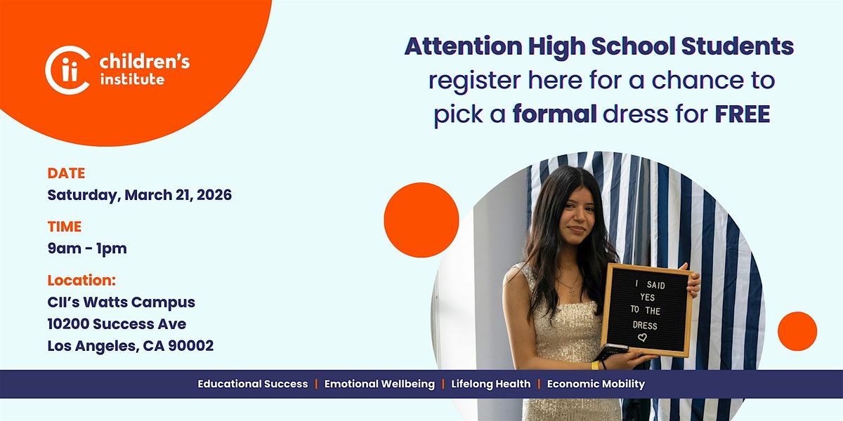 The Children's Institute is excited to host our annual Prom2Go & Dress Giveaway Pop-Up at our Watts Campus. This event is open to high school students in the Los Angeles area.