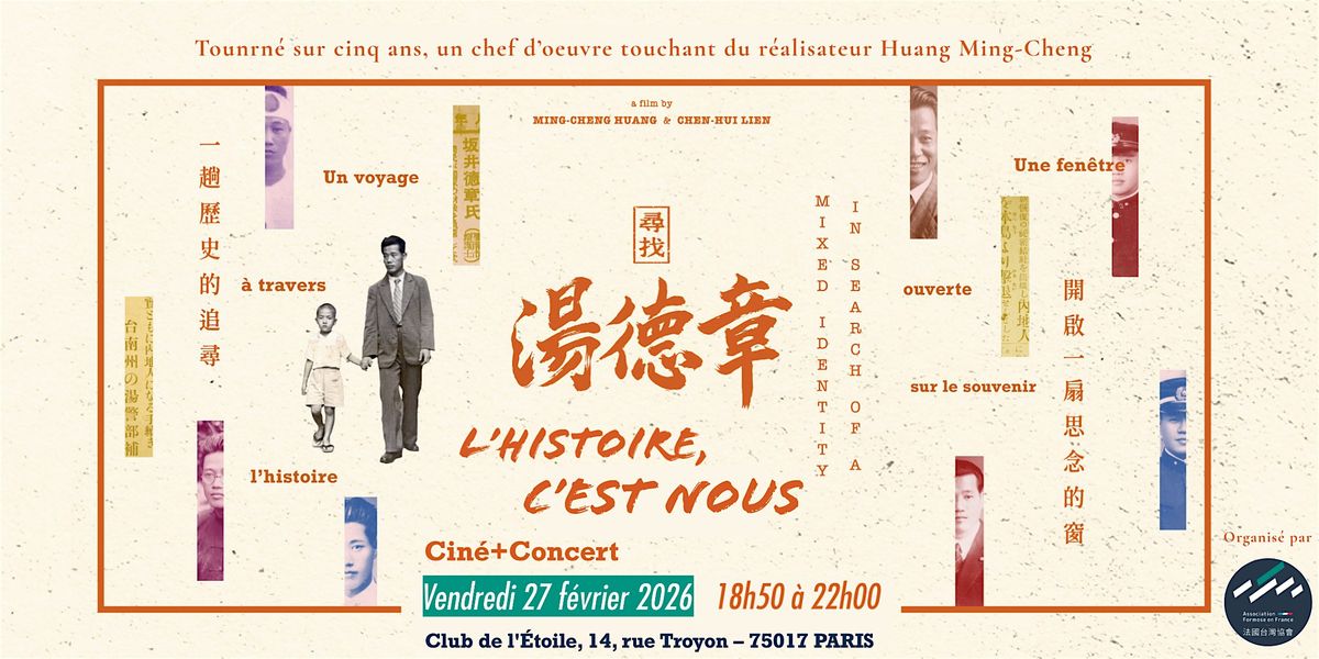 🎞️ UNE PREMIÈRE FRANÇAISE EXCLUSIVE Nous avons l'honneur de projeter, pour la toute première fois en France, le documentaire « À la Recherche de Tang Te-chang - In Search of a Mixed Identity » (尋找湯德章). C'est une occasion rare de découvrir ce cinéma documentaire taïwanais avec un sous-titrage complet en français, spécialement préparé pour rendre cette histoire accessible au public parisien. Ce film ne sera visible nulle part ailleurs.