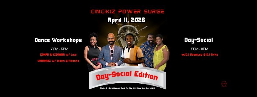 CinciKiz Power Surge is a single-day event designed to help you build skills through topic-specific lessons and social dancing. For our second Power Surge of 2026, we’re excited to bring you lessons in konpa, kizomba, and urban kiz. The workshops will be followed by a great opportunity to practice and connect with other dancers at our daytime social. Instructors Lisa Butts and Didon & Akasha will guide the lessons from 2pm - 5pm, while DJ SeamLes and DJ Arka will be blazing up the dancefloor from 5pm - 8pm.