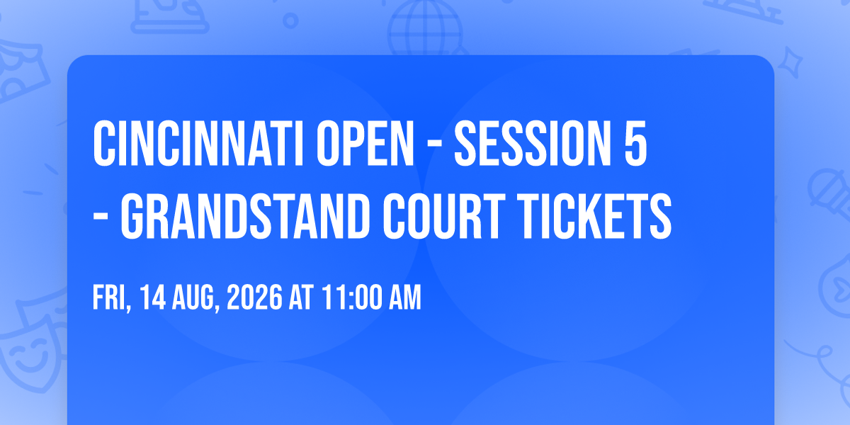 Cincinnati Open Session 5 - Grandstand Court🌟 Step into a world of wonder at Cincinnati Open - Session 5 - Grandstand Court Tickets, where extraordinary moments await! 🏛️ Located at Grandstand Court at Lindner Family Tennis Center in dynamic Mason, OH, this event will become the talk of the town. 📅 Join us on August 14th, 2026 at 11:00 AM for a celebration that defies the ordinary. ✨ This curated experience brings together the best of entertainment, culture, and community spirit. Every detail has been thoughtfully planned to ensure an unforgettable experience for all our guests. 🎯 Take advantage of this opportunity to be part of something special. 💫 Book now at 68.74 EUR. 🎊 Early registration is recommended as space is limited!