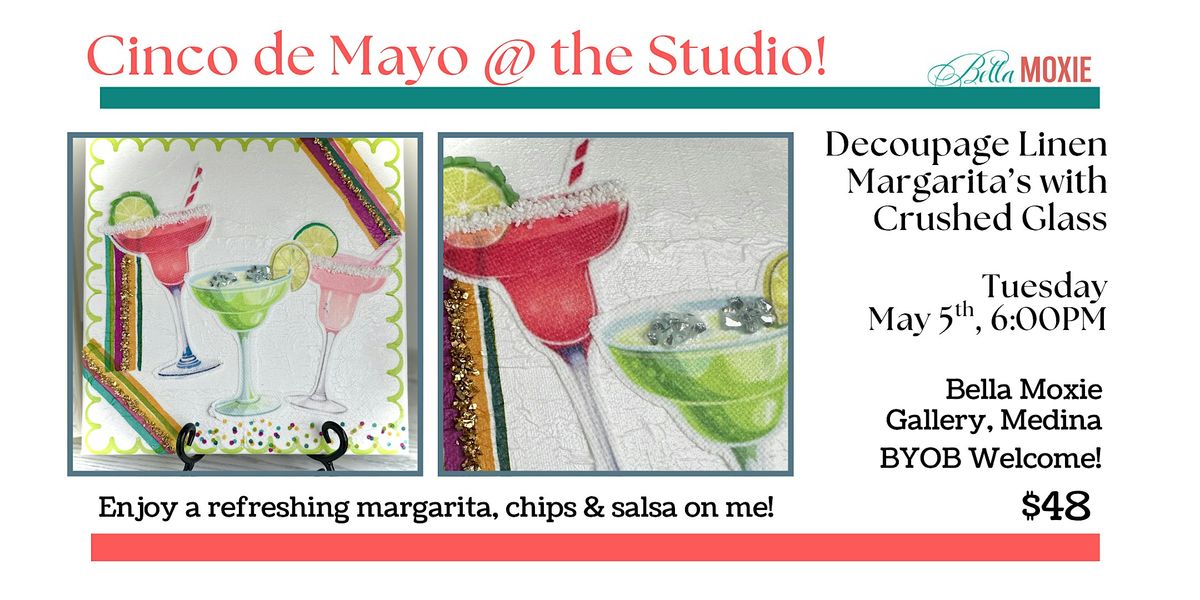 Get ready for a fun and creative evening on May 16, 2026 at 6:00PM (ET)! We're mixing up some creative decoupage vibes with adorable linen margaritas on canvas. Enjoy a margarita, chips & salsa on me! Whether you're a craft newbie or a pro, come hang out, make cool stuff, and sip on some refreshing drinks.