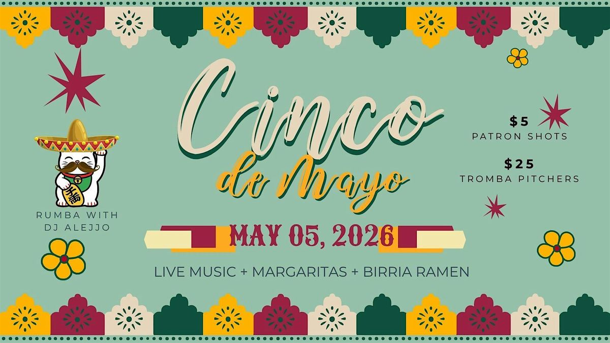 Celebrate Cinco de Mayo with us for a high-energy night of music, drinks, and bold flavors. DJ Alejjo will be setting the vibe all night while you enjoy $25 Tromba Margarita pitchers, $5 Patron shots, and specialty dishes like Birria Ramen, Wonton Tacos, and more. Come ready to drink, eat, and keep the night going.