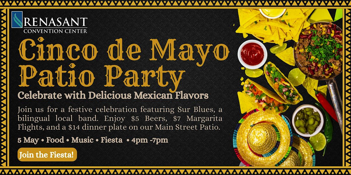 Join us at the Renasant Convention Center for a fun and lively Cinco de Mayo Patio Party! We'll kick things off on May 5, 2026 at 4:00 PM (Central Time). Expect great vibes, tasty treats, and awesome company. Bring your friends and get ready to celebrate in style. Don’t miss out on this awesome afternoon of fun under the sun!