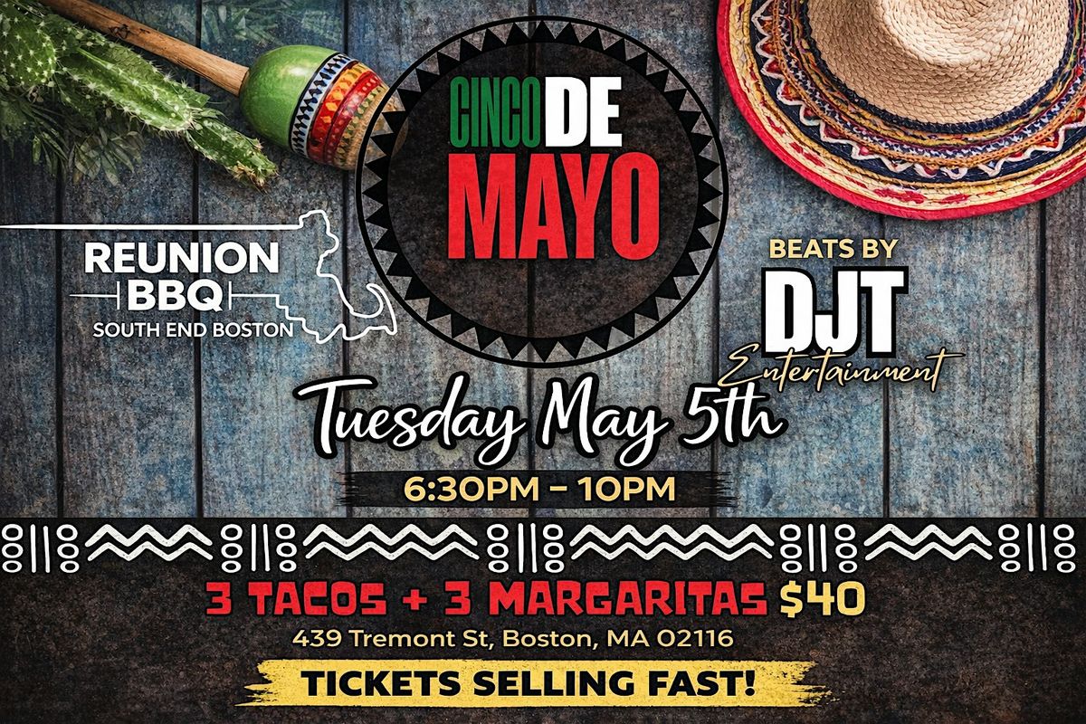 Celebrate Cinco de Mayo the right way—at Reunion BBQ in the South End for a full-on Tacos & Tequila Tuesday Fiesta featuring DJ Tavo.