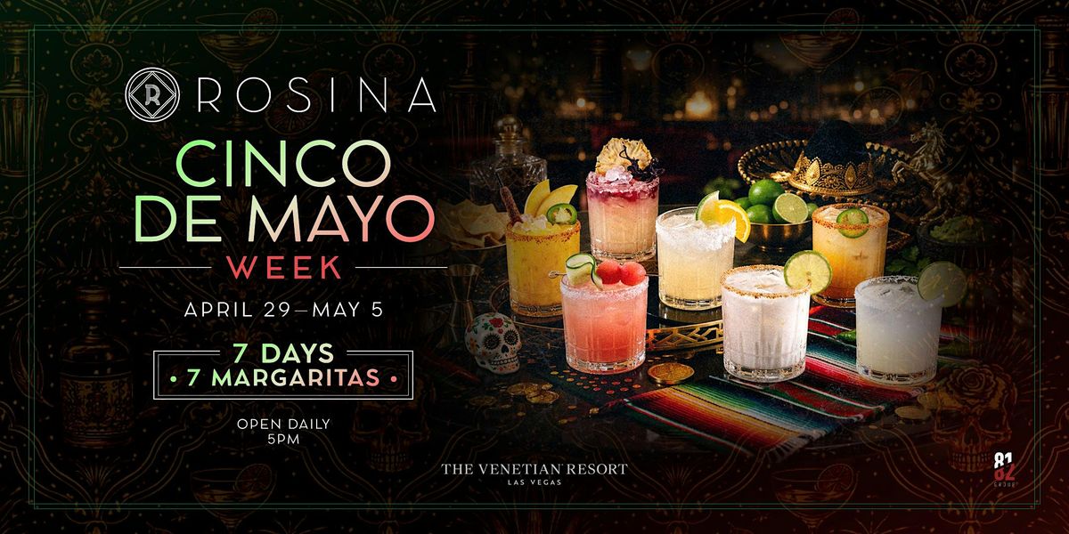 Join us at Rosina for a week long Cinco de Mayo celebrations from April 29 through May 5, featuring seven days and seven unique margaritas for $20 each crafted to showcase bold flavors, fresh ingredients, and creative twists on a classic favorite.