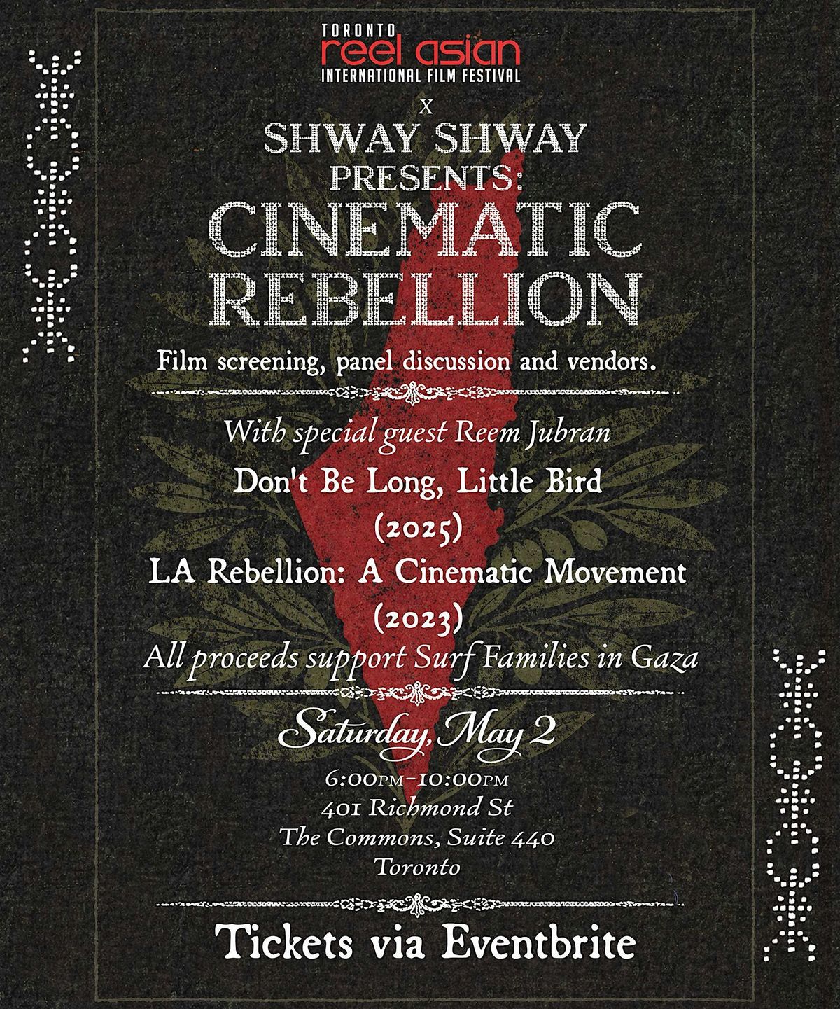 Get your tickets now! Suggested Donation $20-25 CAD (100% proceeds going to Gaza surf families). More details coming soon! <3