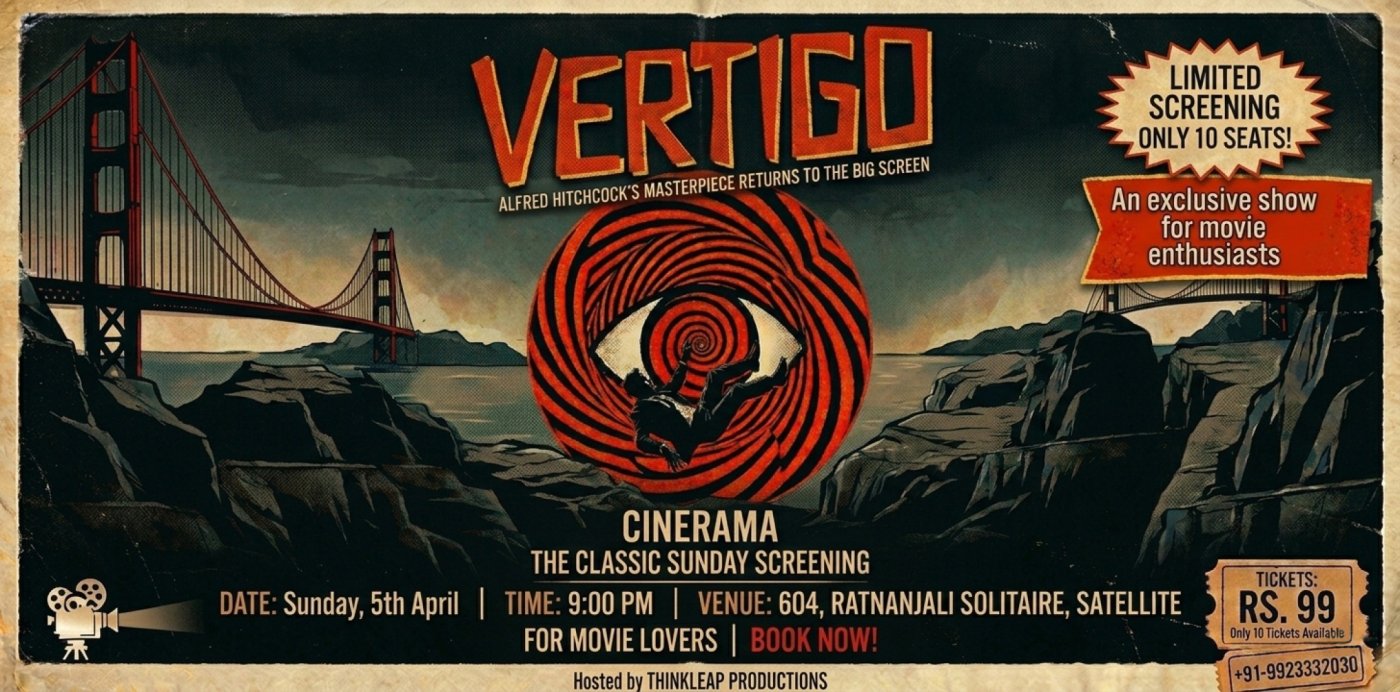 An evening crafted for true film enthusiasts, where visuals, mood, and storytelling blend into an unforgettable cinematic experience. From its haunting score to its iconic visuals, Vertigo isn’t just a film — it’s a feeling.