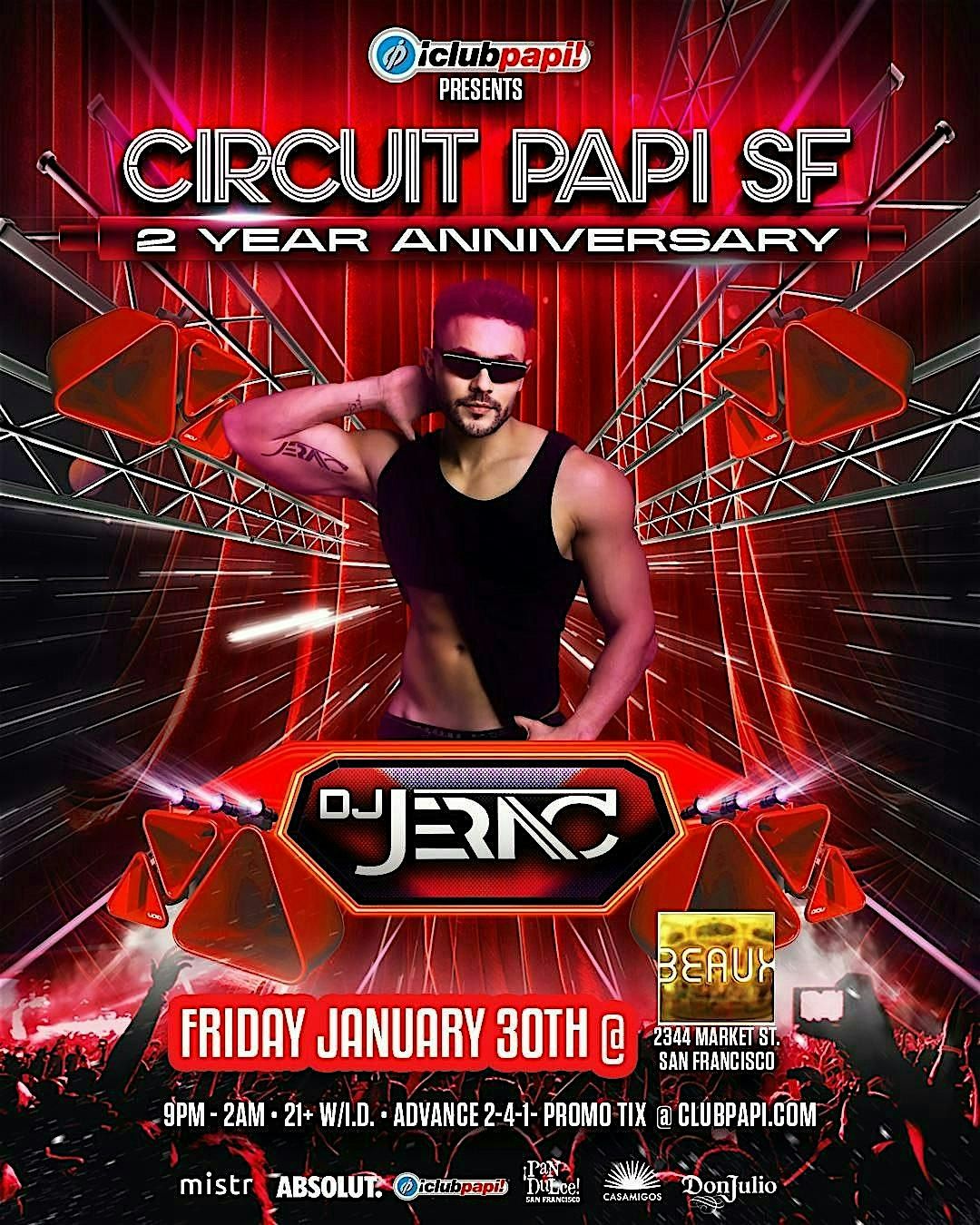 Club Papi invites you to CIRCUIT PAPI san francisco 2 Year Anniversary Extravaganza on Friday, January 30th at the Iconic and newly remodeled BEAUX Nightclub, in the heart of San Francisco's #CASTRO Nightlife District.