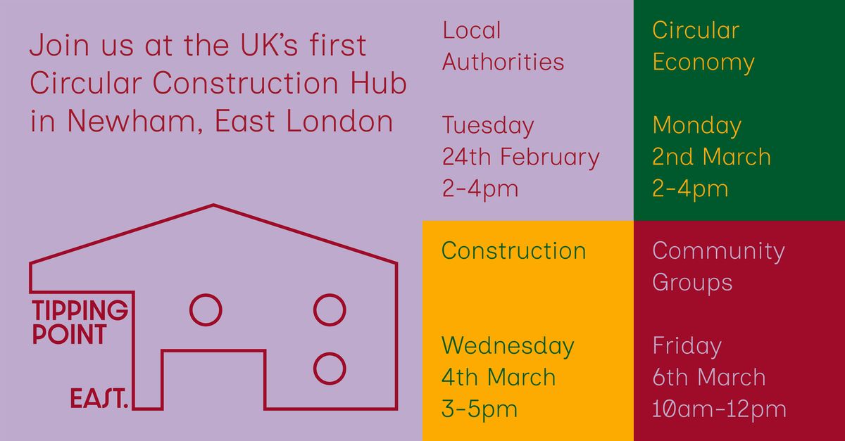 Tipping Point East brings together material reuse, low-carbon construction, green skills training and cultural activity to deliver the UK’s first Circular Construction Hub to support a just transition in the built environment. We’re piloting a new model for circular construction that demonstrates how reclaimed and bio-based materials can be used to retrofit existing buildings at scale.
