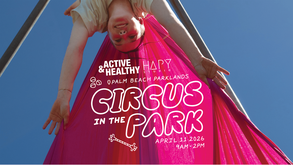 Throughout the day we have a Circus Play area set up where you can try out Hula Hoops, Juggling, Flower Sticks + more! Plus sign up to have a short taster on the Aerial Silks/Trapeze suitable for ages 5yo+ all abilities welcome. Stick around to see the amazing HAPY Youth Troupe Acrobats and Aerialists display their talents in the air with a free show every hour!