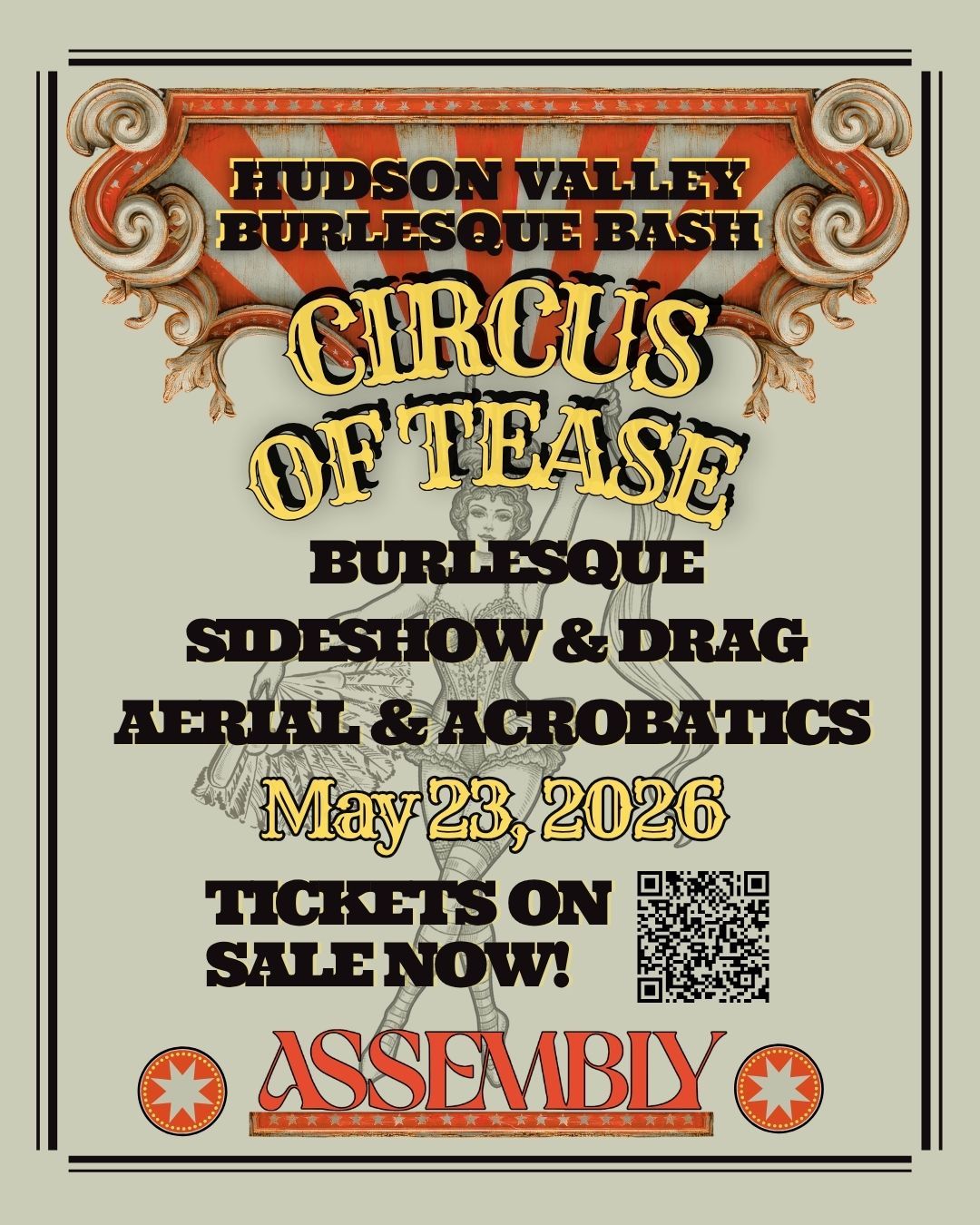 🎉 Prepare to be amazed at Circus of Tease, the most anticipated gathering of the season! 🌟 Set against the stunning backdrop of Assembly Kingston in vibrant Kingston, NY, this event promises to redefine your expectations. 📅 Mark your calendars for May 22nd, 2026 at 07:00 PM and get ready to immerse yourself in an atmosphere of wonder and excitement. ✨ From the moment you arrive, you'll be transported into a world where memories are made and stories come alive. They have crafted an experience that perfectly harmonizes entertainment, innovation, and community spirit. 🌈 Join us as we create moments that will be discussed for years!http://maps.seatics.com/GeneralAdmissionEvent_2021-07-08_1018_10192024_165636_SVGC_tn.png