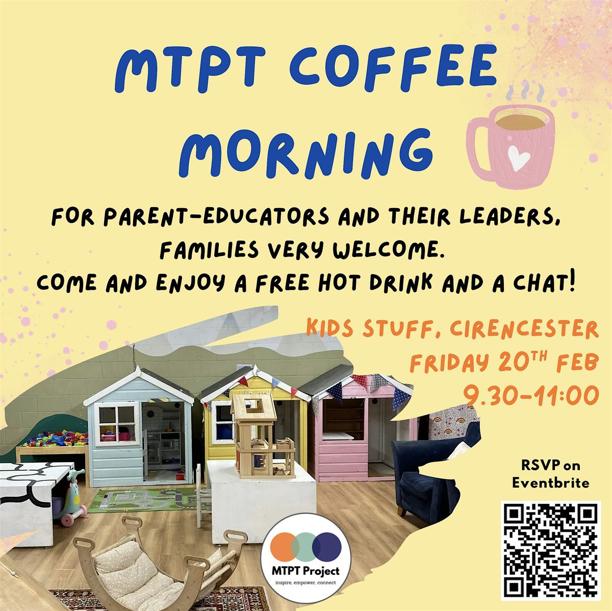 Join The MTPT Project for a relaxed morning of coffee, cake and networking at the Kids Stuff Cafe in Cirencester, hosted by Gloucestershire Regional Representatives, Alice Rawstorne and Holly Bedford.