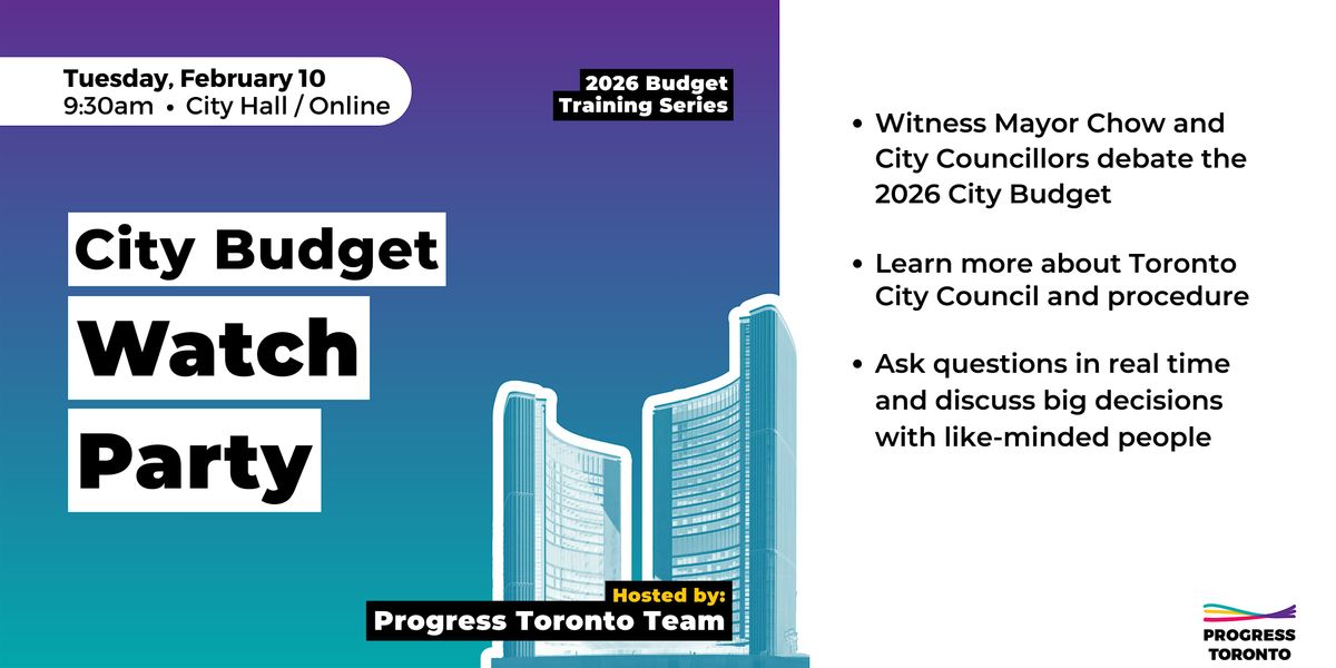 Join Progress Toronto at City Hall or on Zoom on Tuesday, February 10. While we watch City Council live together, Progress Toronto will break down and explain what is happening during the meeting. We will be providing helpful info throughout the day, and can answer questions about process, timing, motions, and more!