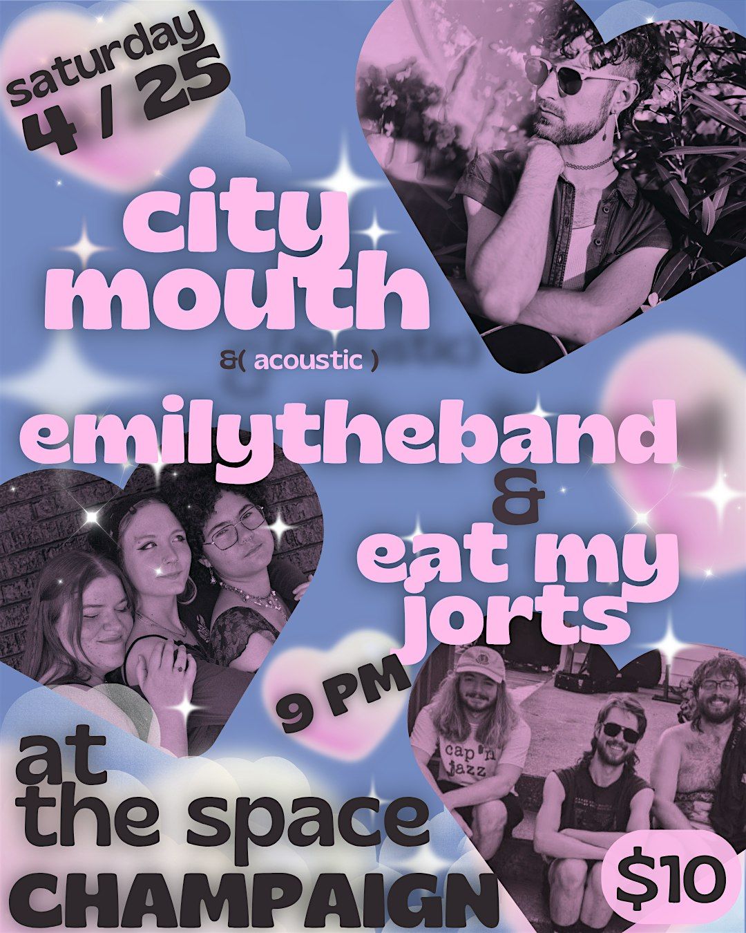 A fun night of iconic music from City Mouth, Emily The Band and Eat My Jorts at The Space! ALL AGES!! $10 cover. Doors at 8, show at 9.