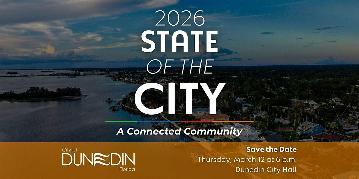 The 2026 event is presented by the City of Dunedin. Event will begin with community networking from 6 – 7 p.m. with light refreshments and the State of the City presentation from 7 – 8 p.m. at Dunedin City Hall located at 737 Louden Avenue, Dunedin, FL.