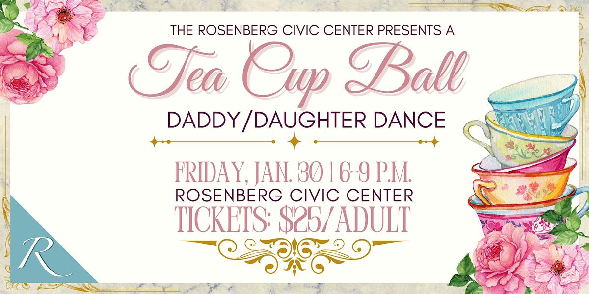 The Rosenberg Civic Center is thrilled to host the Tea Cup Ball 4th annual Daddy/Daughter Dance on Friday, Jan. 30, 2026, from 6-9 p.m. at the Rosenberg Civic Center, located at 3825 Highway 36 S.