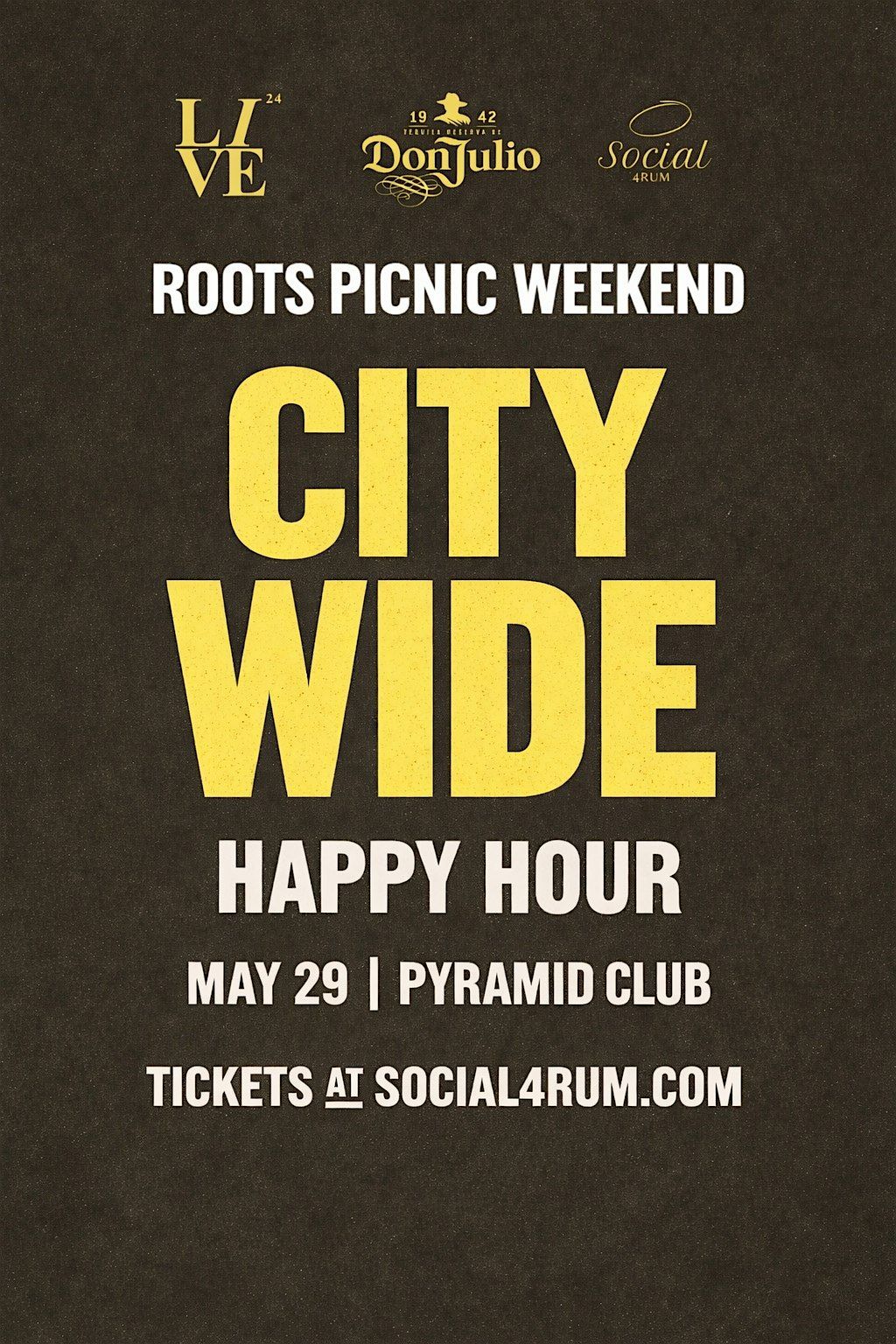 Before the weekend takes over the city, City Wide invites you to step into the room that starts it all. Hosted at the Pyramid Club, this upscale happy hour serves as a private welcome to the city for Roots Picnic Weekend, featuring a curated Don Julio tasting, panoramic views, and an intentionally selected crowd.