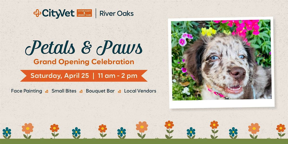 Celebrate with us at the CityVet River Oaks Petals & Paws Grand Opening! Join fellow pet lovers for an afternoon of community, connection, and fun. Enjoy face painting, pet portraits, light bites, a bouquet bar, and a curated selection of local vendors. Bring your pets and be part of the celebration, we can’t wait to welcome you!