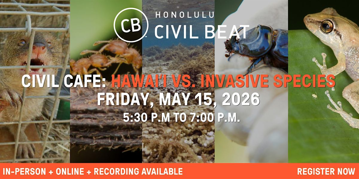 Join us in our Kaimukī newsroom for a hybrid (in-person and online) discussion on the growing threat of invasive species in Hawaiʻi on Friday, May 15, from 5:30 to 7:00 p.m. with local leaders and advocates working on the front lines to combat invasive species and protect Hawaiʻi’s native ecosystems. They plan to share current efforts, challenges, and solutions to address this urgent environmental issue. Doors open at 4:30 p.m.