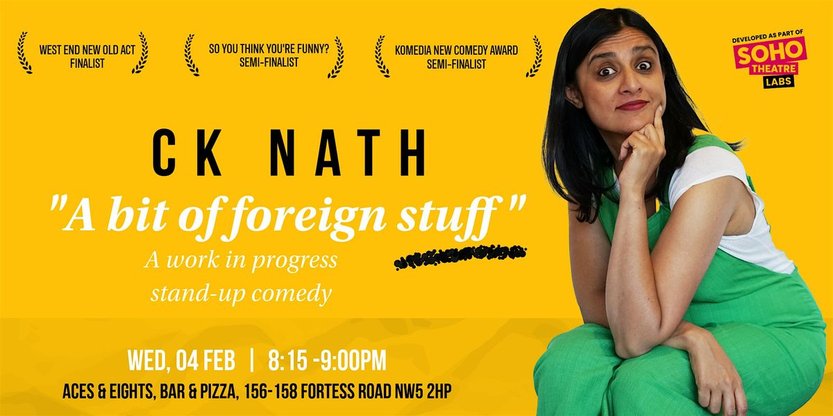 High energy and full of bite! Join CK as she takes you through the juiciest bits of her life growing up in India, finding herself in the UK and the inevitable culture clash in this work-in-progress show. Blending sharp stand-up, vivid storytelling, and cheeky character work as she channels the conservative Indian mother as easily as a middle class British nanny.