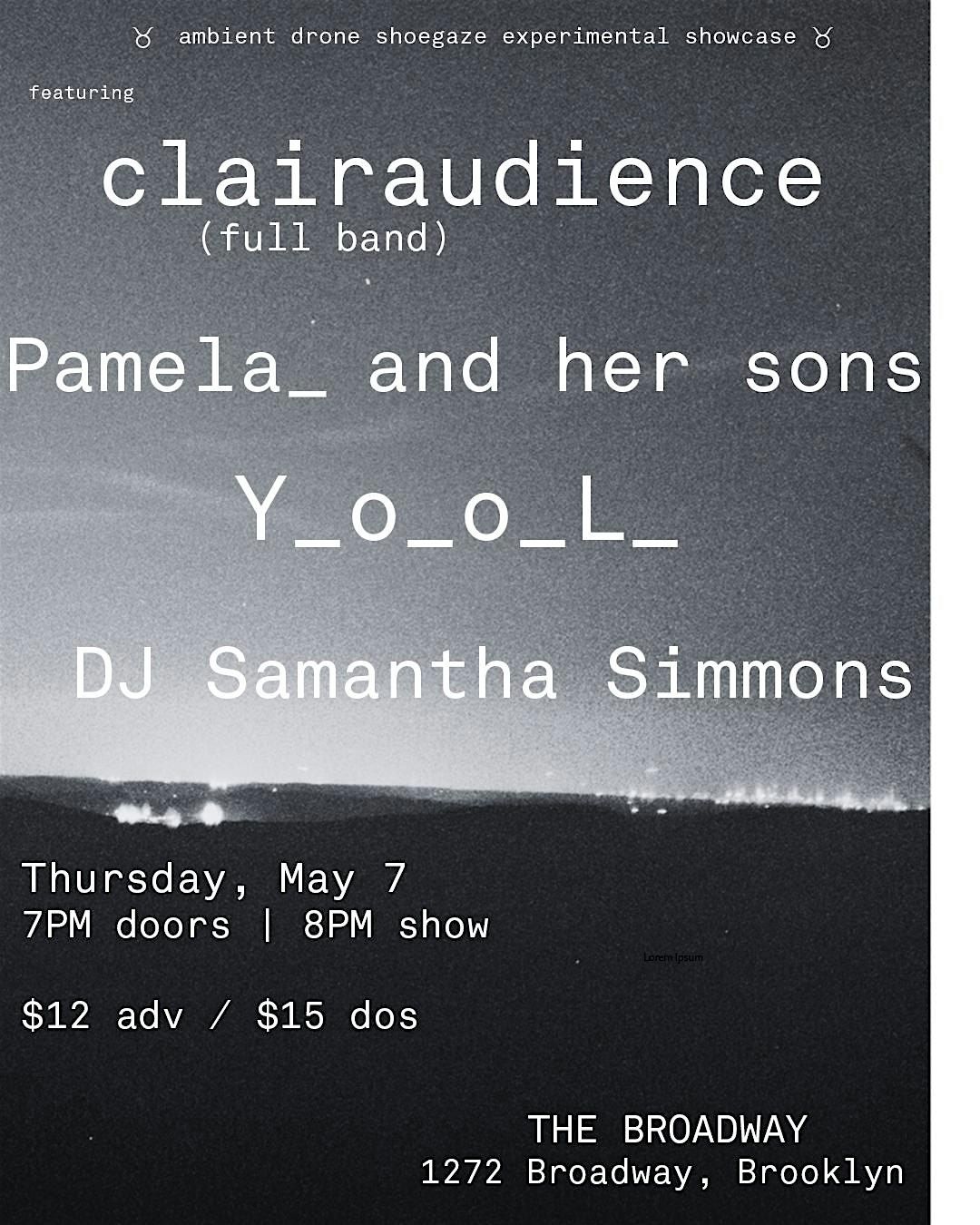 clairaudience is the ambient guitar project of Queens-based musician Mike Sheffield. A miasmic suite of drone, shoegaze, and ambient–yet undefined—clairaudience functions as a solo project, full band, and collaborative effort. For this specific performance, Sheffield will be joined by Jess Paps, Healani Combier-Kapel, Alex, Cvetovich, and Carly Salas. Last May, clairaudience released their first full length “Letters From Emptiness” on kshack records. First Floor’s Shawn Reynaldo called it “heavy-hearted shoegaze bringing to mind the transcendent work of bands like Slowdive and Chapterhouse.” Writing for Uproxx, Ian Cohen called it “one of the most striking shoegaze releases of 2025,” going on further to say, “clairaudience work in zero-gravity reveries that recast Kranky’s early aughts output as an untapped resource for a dronegaze future.”