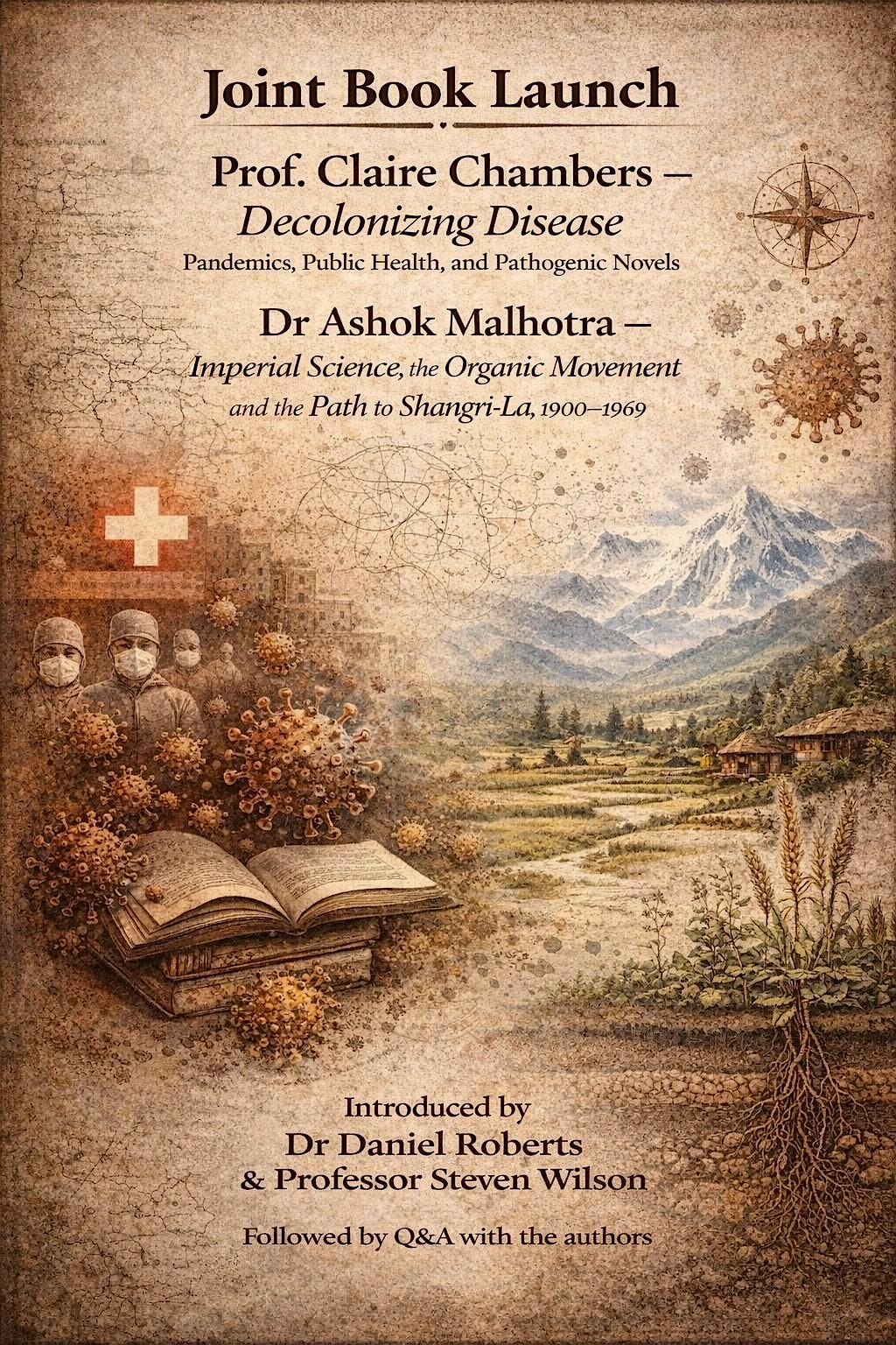 Professor Claire Chambers (University of York) and Dr Ashok Malhotra (Queen’s University Belfast) will present their new books, which together trace how ideas of health, environment, and disease have been shaped by colonial power, global inequality, and scientific authority.