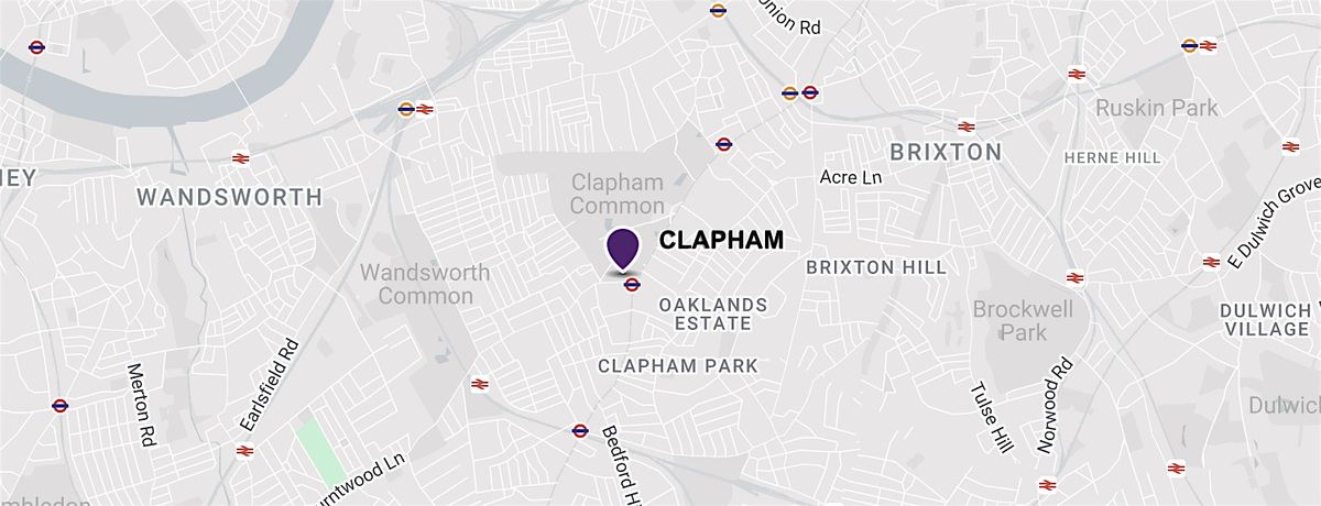 This venue is in South London, a few minutes' walk from Clapham South Tube station (Northern Line).
