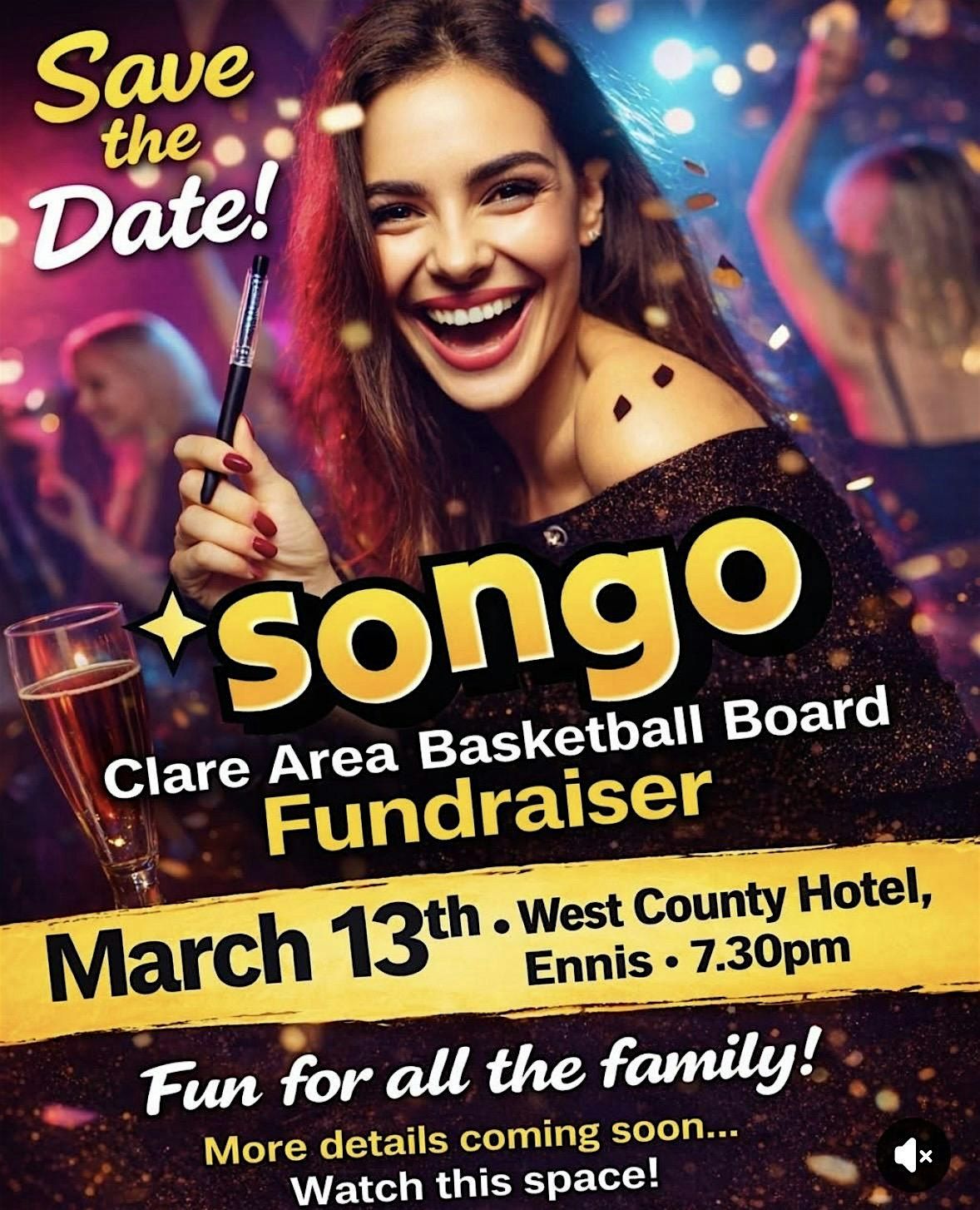 Get ready for a super fun in-person night with the Clare Area Basketball Board! Join us for Music Bingo, where your favorite tunes meet classic bingo excitement. Whether you're a music buff or just looking for a chill night out, this event is for you. Bring your friends, enjoy some great vibes, and see if you can shout Bingo! first. Don’t miss out on this lively and laid-back evening. See you there!