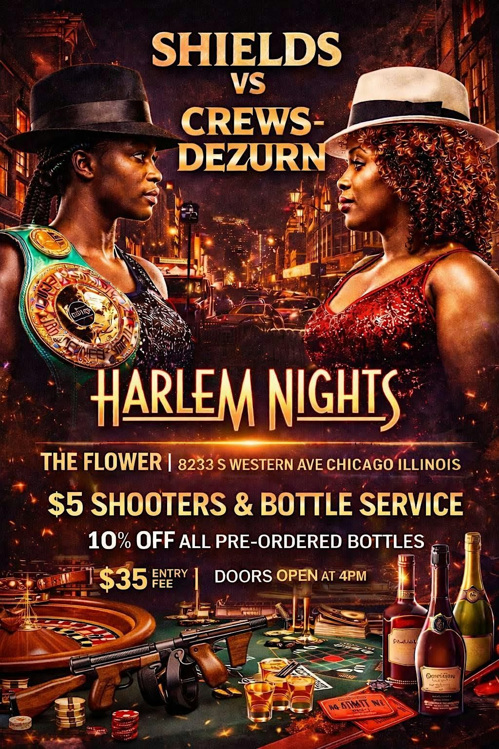 Get ready for an electrifying night in person as Claressa Shield takes on Crews Dezurn in a battle you don't wanna miss. This fight promises non-stop action, raw energy, and moments that will have you on the edge of your seat. Bring your crew, feel the roar of the crowd, and witness history in the making!