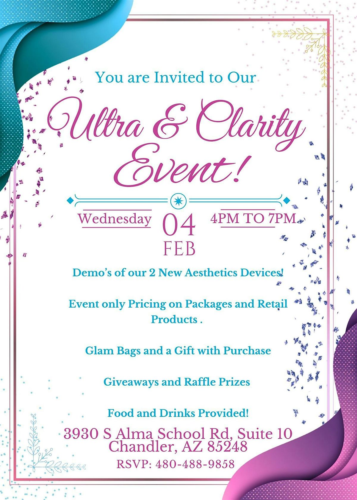 Join us on February 4th from 4-7pm for demo’s of our two new laser devices, Ultra and Clarity II.