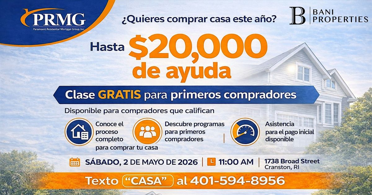 Estás cansado de tirar tu dinero en renta todos los meses? 💸 Te espero este 2 de mayo en Cranston para una clase GRATIS donde te enseñaré el camino real hacia tu propia casa. 🏠 Descubre paso a paso cómo calificar para programas que ofrecen hasta $20,000 en ayuda para tu pago inicial. Hablaremos de frente y sin rodeos sobre lo que realmente necesitas para cerrar tu hogar este año. 🔑 Los cupos en nuestro local de Broad Street son limitados, así que no esperes al último minuto. 🏃♂️💨 Reserva tu entrada aquí mismo o envía un texto con la palabra "CASA" al 📞 401-594-8956 para asegurar tu lugar. 🤜🤛