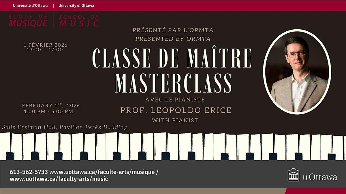 Leopoldo Erice est pianiste et pédagogue de formation internationale, titulaire d’un doctorat en musique de la State University of New York at Stony Brook. Il a étudié en Espagne, aux Pays-Bas et aux États-Unis auprès de pédagogues de renom, dont Leonard Hokanson, Menahem Pressler, Emile Naoumoff et Christina Dahl. Pianiste actif sur la scène internationale, il s’est produit dans des salles prestigieuses telles que l’Auditorio Nacional de Música de Madrid et a collaboré avec des ensembles de musique de chambre de premier plan, dont les quatuors Quiroga et Penderecki. Très engagé dans l’enseignement, il a occupé des postes universitaires aux États-Unis, aux Émirats arabes unis et en Espagne, et enseigne actuellement à l’Université d’Ottawa. Ses classes de maître se distinguent par la profondeur pédagogique, l’expérience de la scène et une perspective internationale riche et inspirante.
