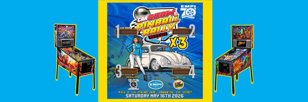 - $25 Reserves your spot for your vehicle + gets you into the Pinball Rally for FREE PLAY pinball and more. ($30 at the door)
