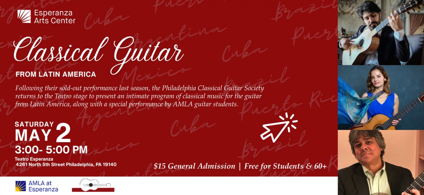 Following their sold-out performance last season, the Philadelphia Classical Guitar Society returns to the Teatro stage to present an intimate program of classical music for the guitar from Latin America, along with a special performance by AMLA guitar students.