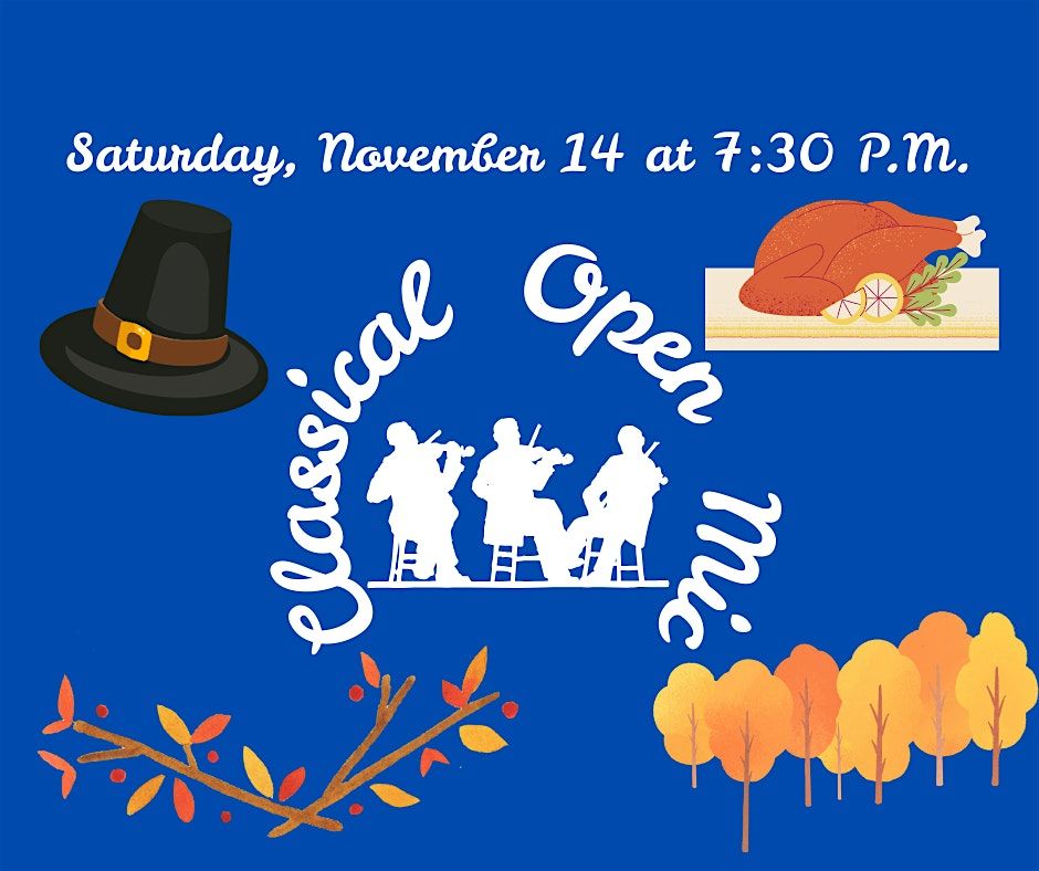 Classical Open Mic on November 14 at 7:30 P.M. at Walker Chapel UMC on Glebe Rd.