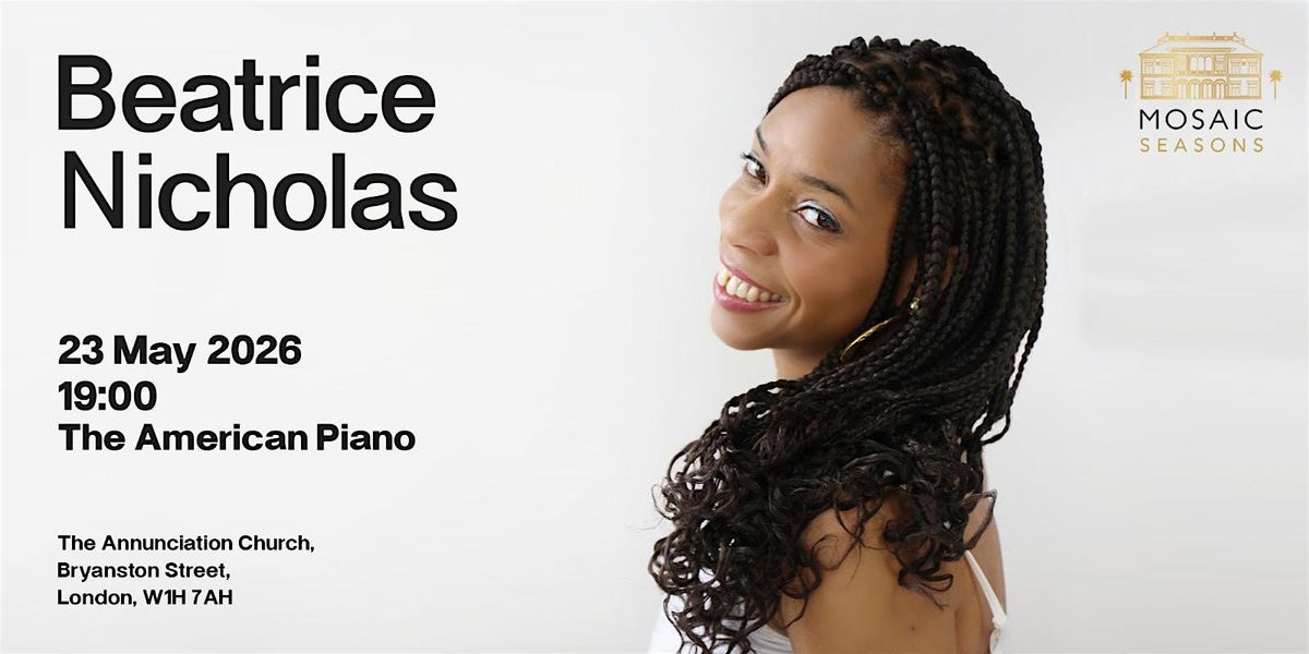 Info: Beatrice Nicholas is a British concert pianist performing solo and chamber music internationally. Her solo recitals have been noted for their culturally rich and ethnically diverse programming, often combining classical and jazz together. Beatrice has performed at the major classical music venues including the Wigmore Hall, Southbank Center, Kings Place, Snape Maltings, Edinburgh Queen’s Hall. Her latest release Black and Classical, throws a spotlight on classical music by black women and has been described as a ‘stunning record’ by Bandcamp. She has enjoyed collaboration with oboist Nicholas Daniel, composers Lola Perrin, Matthias Sparlingher and recently appeared in the Hollywood movie The Beekeeper playing music by Frédéric Chopin. Beatrice is also a member of the Chineke! Chamber Ensemble; an ensemble of principal players from the Chineke! Orchestra, Europe's first professional orchestra of majority Black & ethnically diverse musicians.