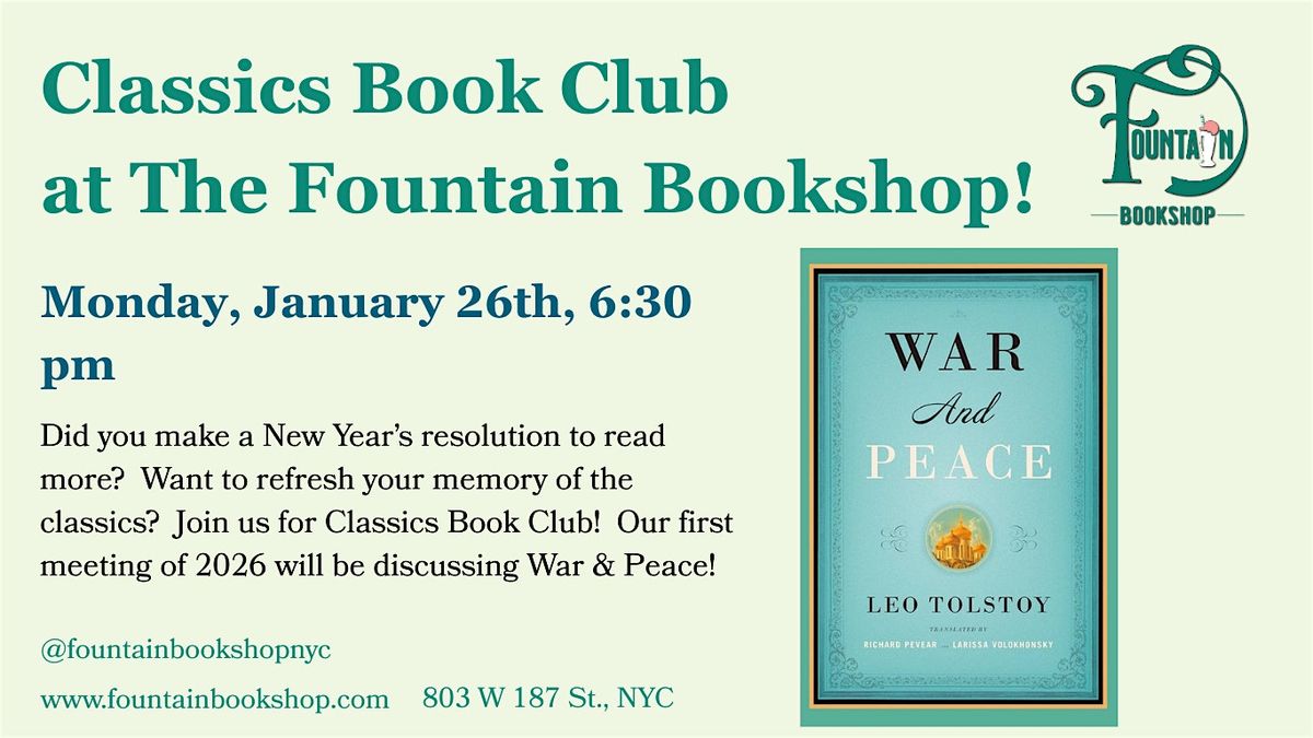 Join us for "The Classics" Book Club! Now at a NEW TIME: 6:30 pm!
