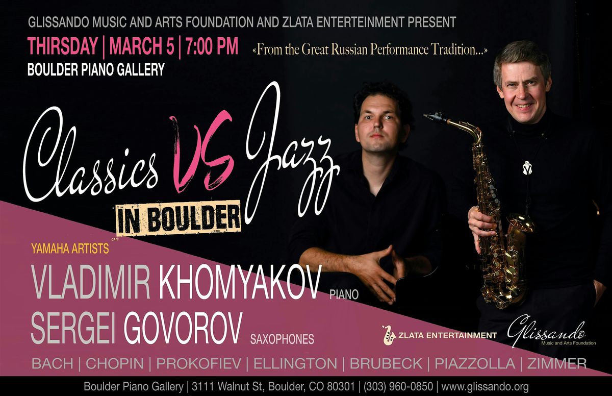 Experience a thrilling musical encounter where genres collide and inspire each other. CLASSICS vs JAZZ brings together two world-renowned musicians — pianist Vladimir Khomyakov and saxophonist Sergei Govorov — for an evening of virtuosity, contrast, and creative dialogue.