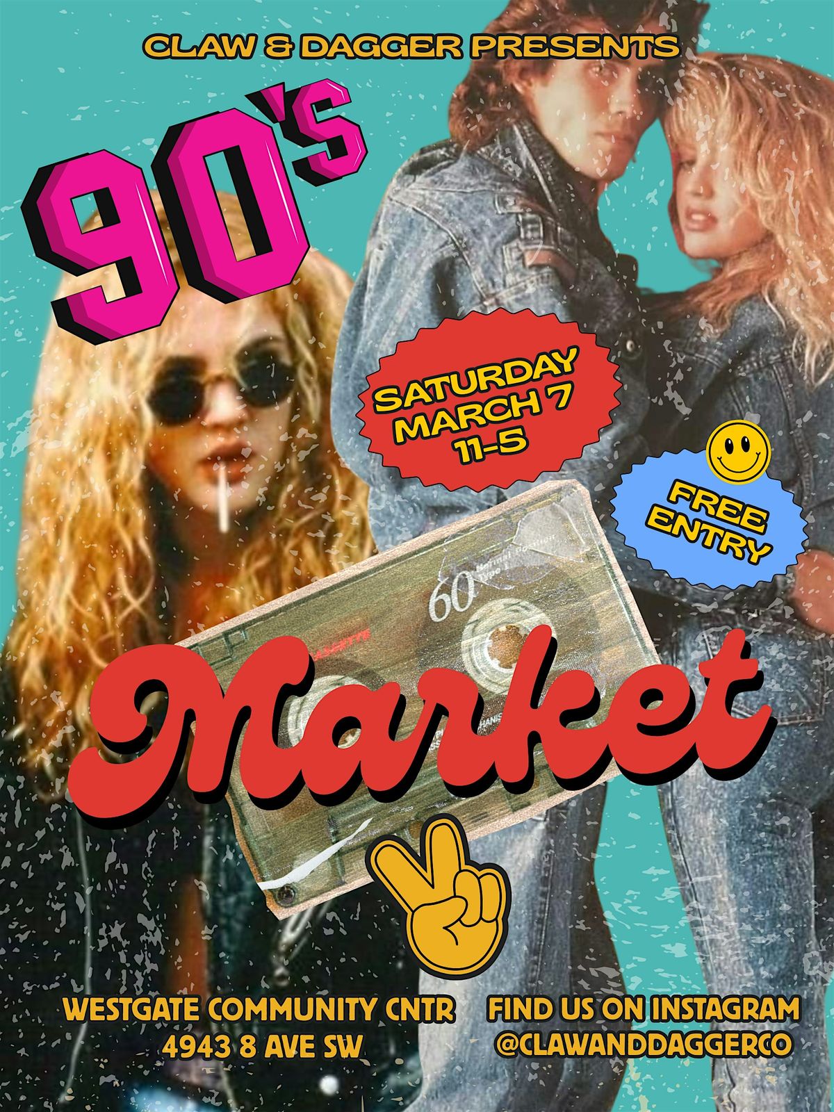 Welcome to Claw & Dagger Presents The 90's Market! Join us at 4943 8 Ave SW on March 7, 2026 at 11:00 AM for a blast from the past. Dust off your flannel shirts and scrunchies because we're bringing back all things 90's. Come hang out, shop, and relive the good ol' days with us. Don't miss out on this rad event!