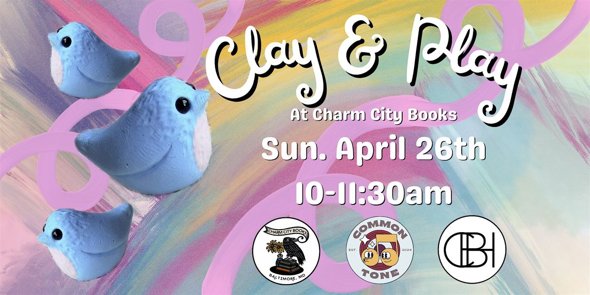Come celebrate spring at Charm City Books. Begin your morning working with Hillary DeWeese from Clay By Hillary and create a cute clay figurine of a little bluebird. After sculpting your new friend, join Mike & Beth from Common Tone for a Commonplay music and movement class. Tickets for children ages 2 -10 years old, but babies are also welcome to join! Space is limited, so advanced regstration is required.
