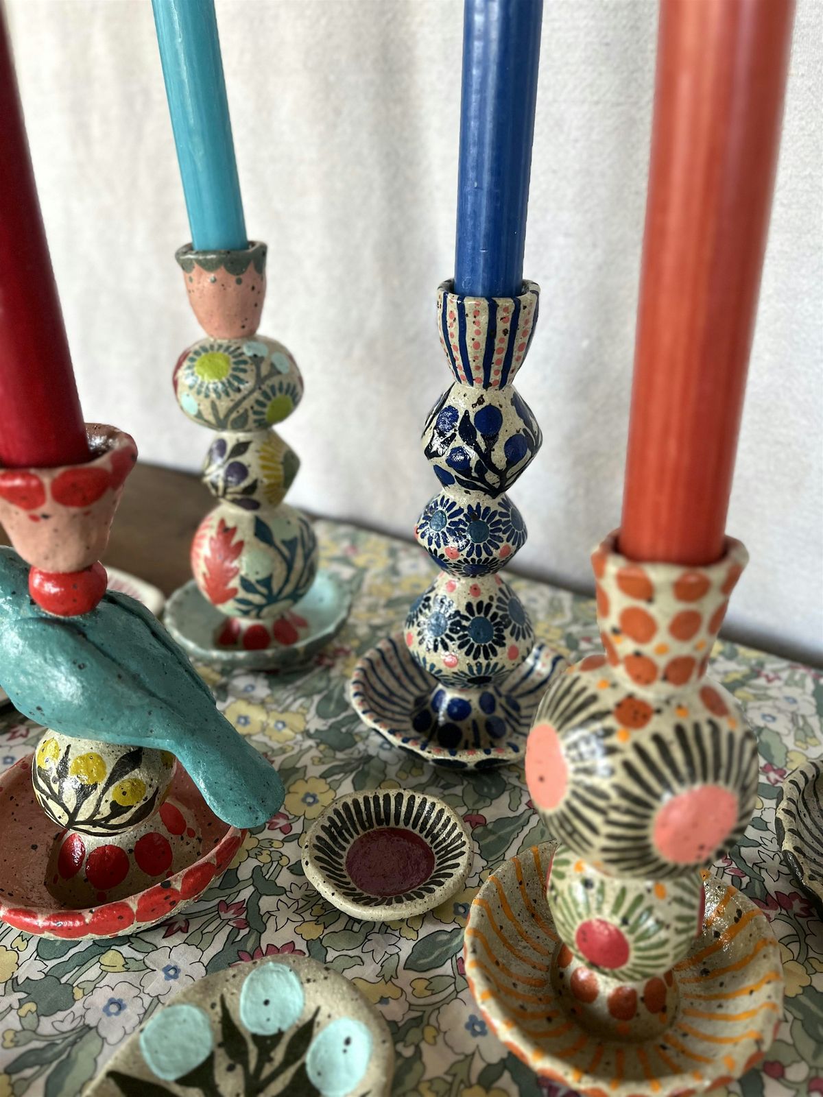 Join me at my Columbia City clay and fiber art studio for a workshop creating your own stoneware candlestick holders, created using a pinch and construction method to build stacked shapes. Yours will be totally unique and can be minimalist or maximalist. You can use geometric and abstract shapes, or playful shapes like animals. Our pieces will be rustic and beautiful! I have tons of underglaze colors to paint them, or you can keep it simple.