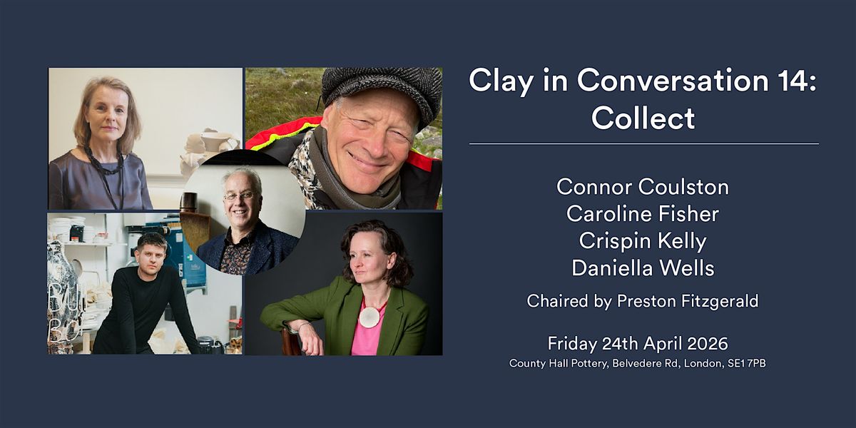 For the next episode of Clay in Conversation 14: Collect, we’re switching things around to hear from five contemporary collectors, prominent in the field of ceramics. Each with their own story surrounding their involvement with collecting, through their own collections or as champions of the business of collecting and supporting ceramic artists. We are thrilled to welcome Connor Coulston, Caroline Fisher, Crispin Kelly, Daniella Wells along with Preston Fitzgerald who will be chairing the conversation.