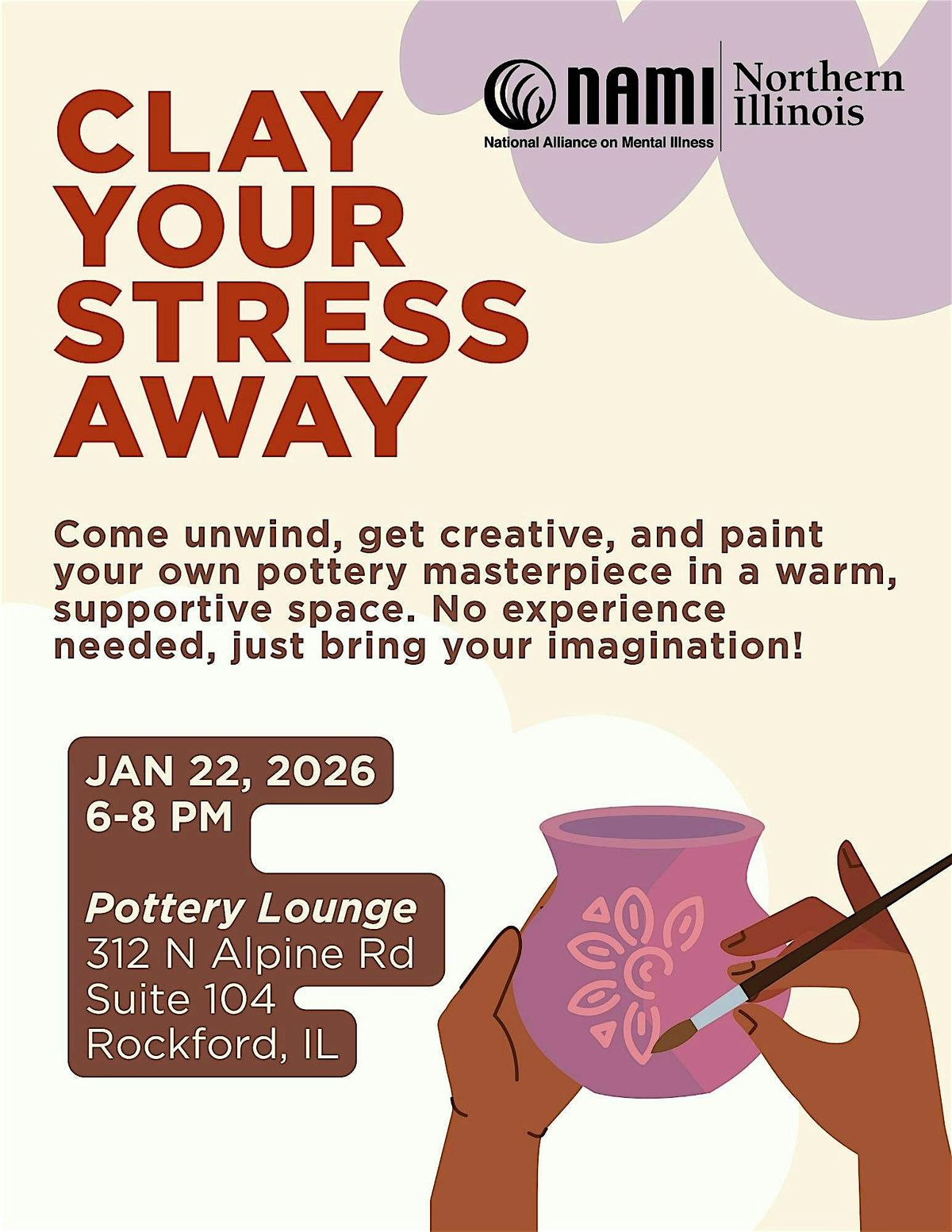 Take a breather and get your hands a little messy. Join us for a paint-your-own pottery session focused on relaxation, creativity, and mental health. No experience needed. Just show up, slow down, and let the clay do the rest.