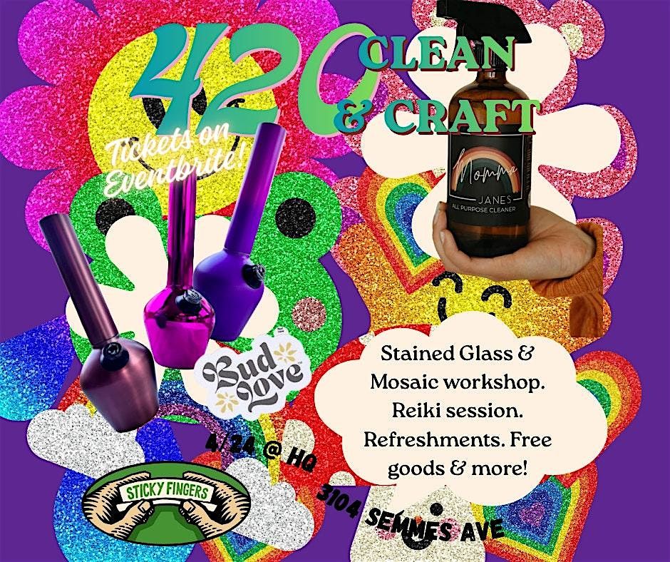 Book your designated time slot to vibe out with Jessie and make a custom 420 themed stained glass or mosaic piece! In between attend the group Reiki session with Stephanie!